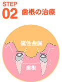 残した歯根に、磁石を吸着する「磁性金属」を取り付けます。 |