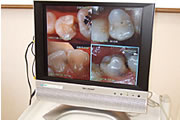 口腔内CCDカメラお口の中は狭く暗いことからご自身ではむし歯の状態などを直接見る事はできません。そこでCCDカメラを使い、ご自身の口腔内をモニターで分りやすく確認することができます。ご希望の方は、スタッフまでお申し付けください。 |