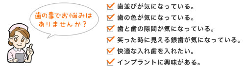 自由診療とは、高価な治療をすることだけを目的とするものではありません。自由診療の目的は、保険制度の規制の枠にとらわれず、患者様の希望にそって、自由に十分な時間と手間をかけて最良な治療を実現するための診療です。保険診療では、材料や治療方法の規制があります。より良い素材や耐久性や審美性、高度な技術の治療など、患者様がよりご満足いただける診療を望まれた場合の選択肢です。倉内歯科医院では、患者様から歯についての悩みをお聞きして、親身にお答えさせて頂きます。何かお悩みがございましたら、ささいな事でもお気軽に医師・スタッフにご相談ください。
