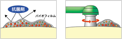 バイオフィルムは細菌の出す膜に守られ強力に付着します。